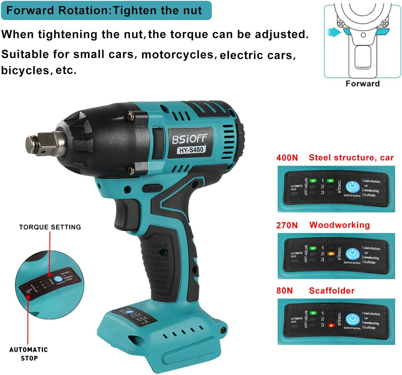 . AOBEN Cordless Impact Wrench 1/2 Inch, Power Impact Gun Kit, Max 600N Powered by a high-performance motor to produce 450 ft